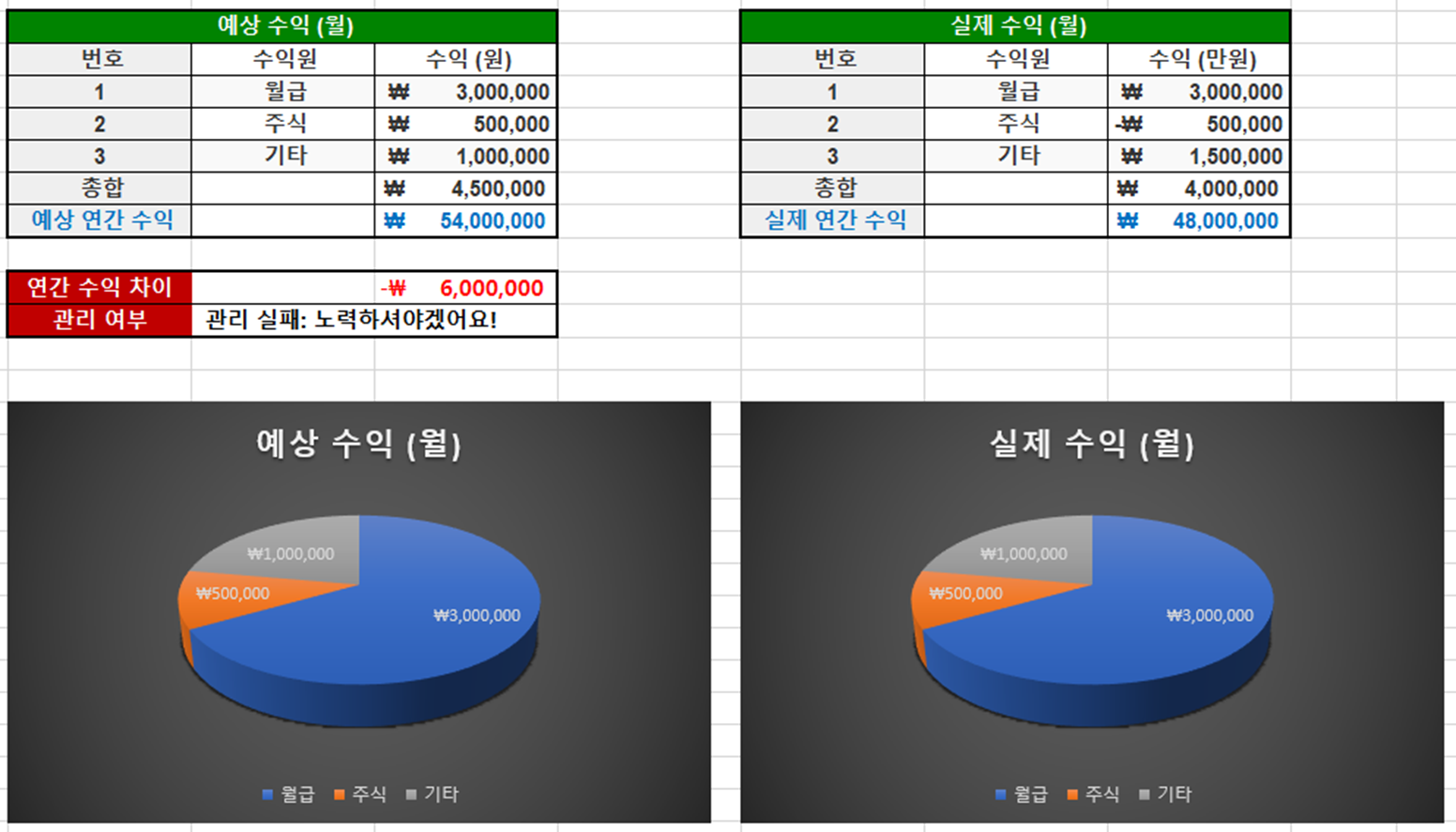 엑셀을 활용한 가계부 작성 (소득 및 경비)