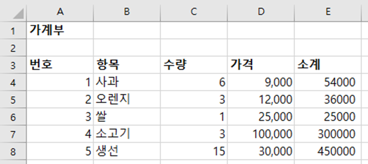 여기서 소계의 총합을 구하고 싶은 상황을 가정해보죠.