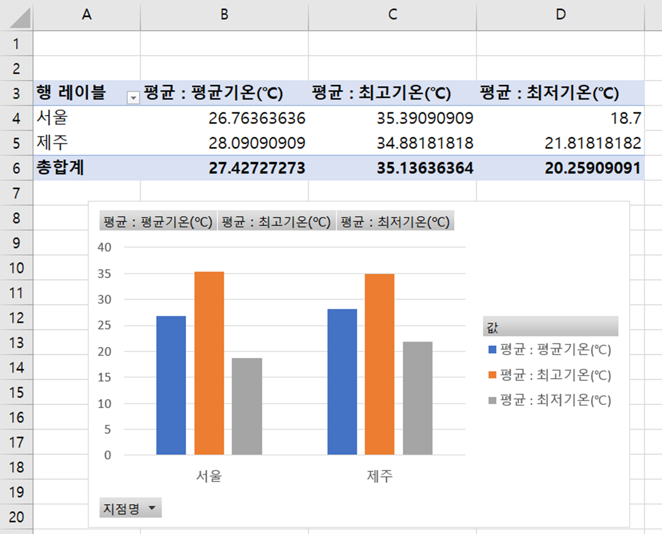 피벗 테이블과 차트를 완성했습니다.